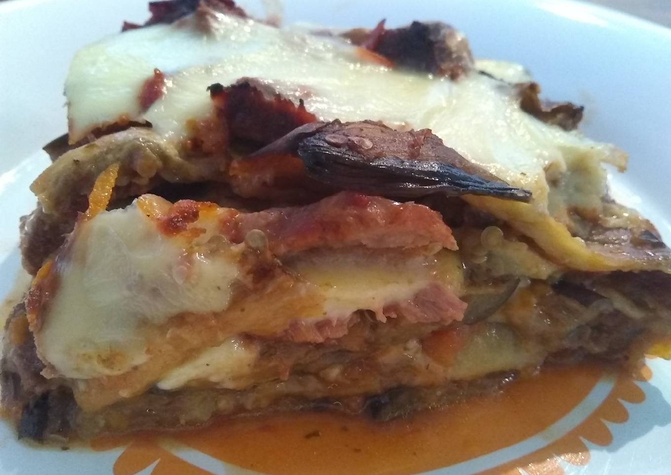 Steps to make to make Lasagna de berenjenas rellena con estofado de roast beef