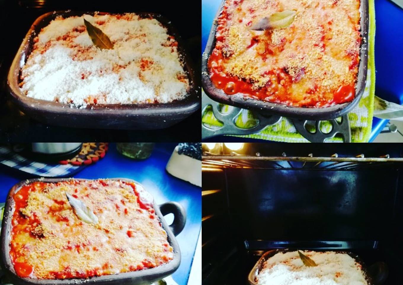 - Disponer las berenjenas en una fuente y preparar igual que la lasaña alternando, berenjenas, salsa boloñesa, queso, berenjenas, salsa blanca, etc.