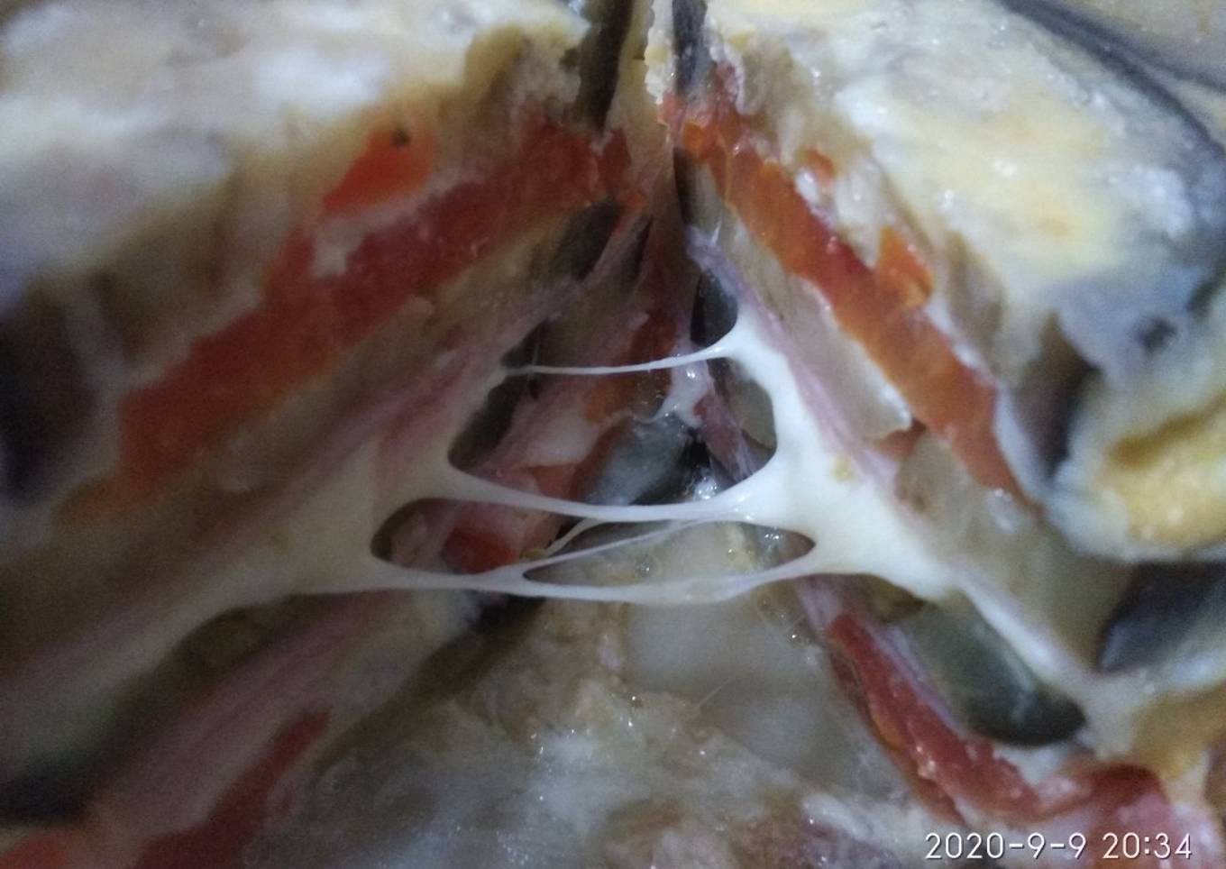 - Continuar con tomates, jamón, queso, berenjenas y así y terminar con berenjenas.