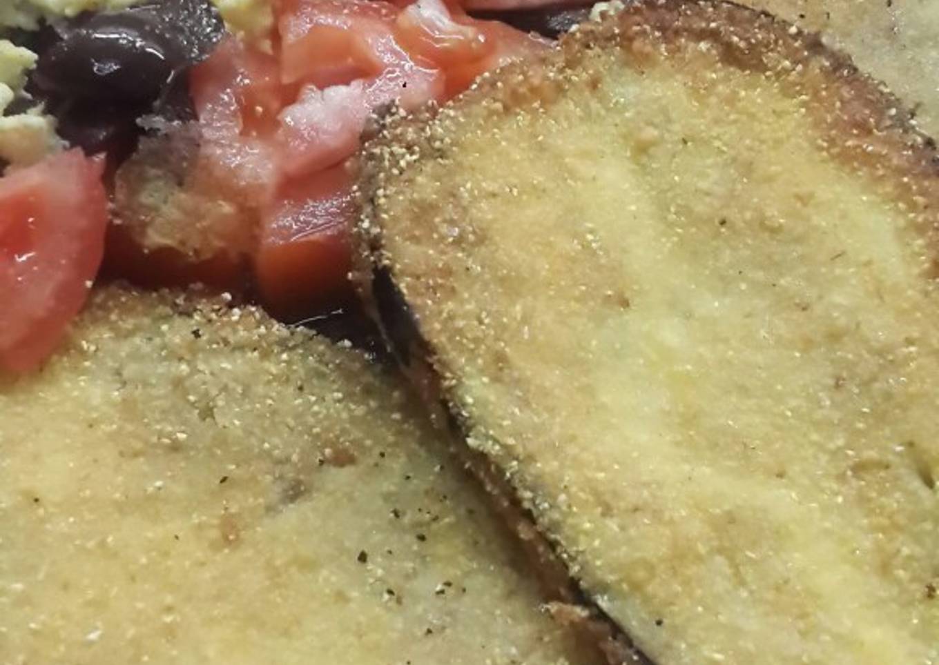 Milanesas de berenjenas rebozadas en polenta🌾🌽🍆