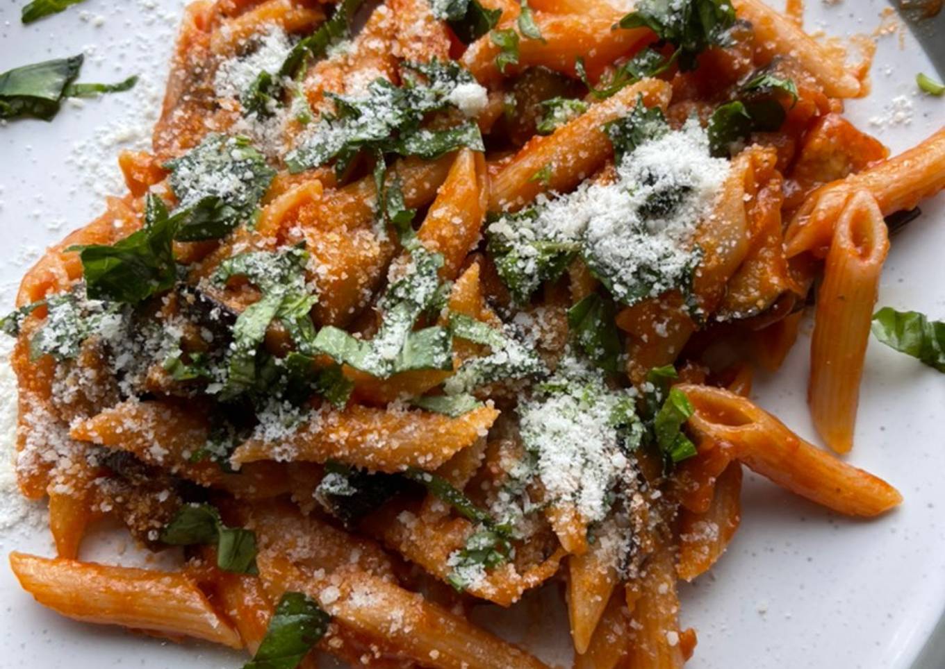 Salsa de berenjenas, aceitunas y albahaca para pasta