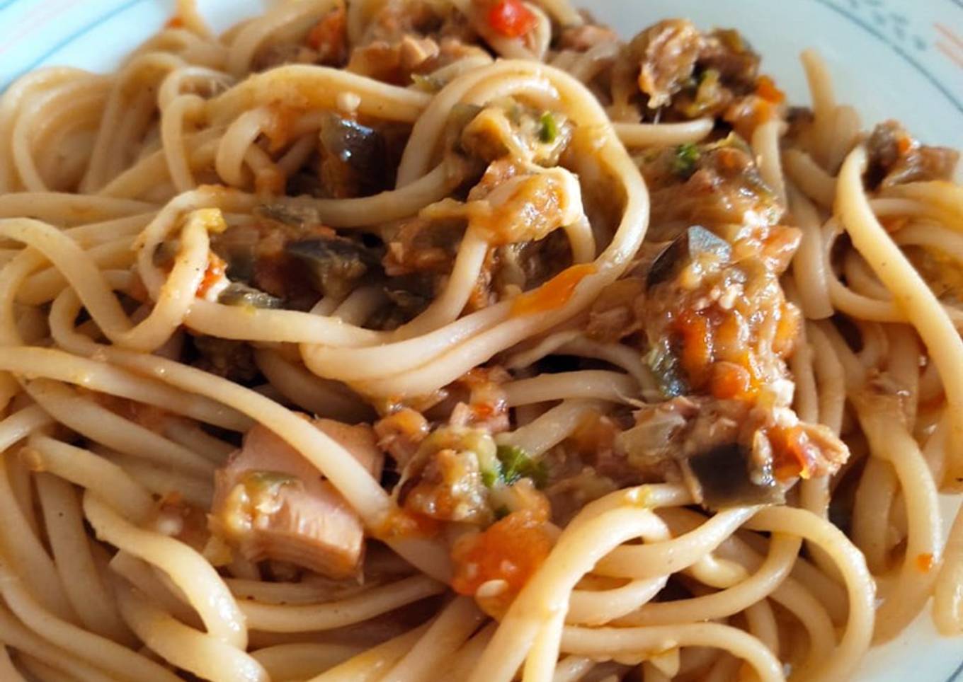 Pasta en salsa de at煤n y berenjena 馃構❤️