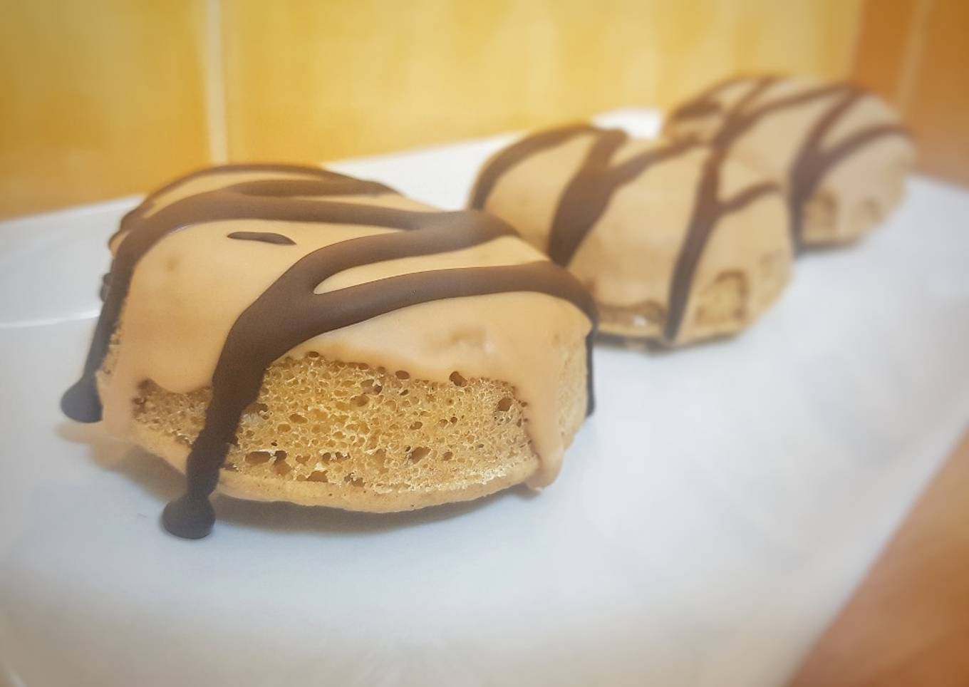 - Si usas molde de berlinas no tienes problemas, pero si usas de dónuts tienes que cerrar bien el agujero con el chocolate de la cobertura. En este caso usarás 230g de chocolate gold y 2 cdas aceite de coco.