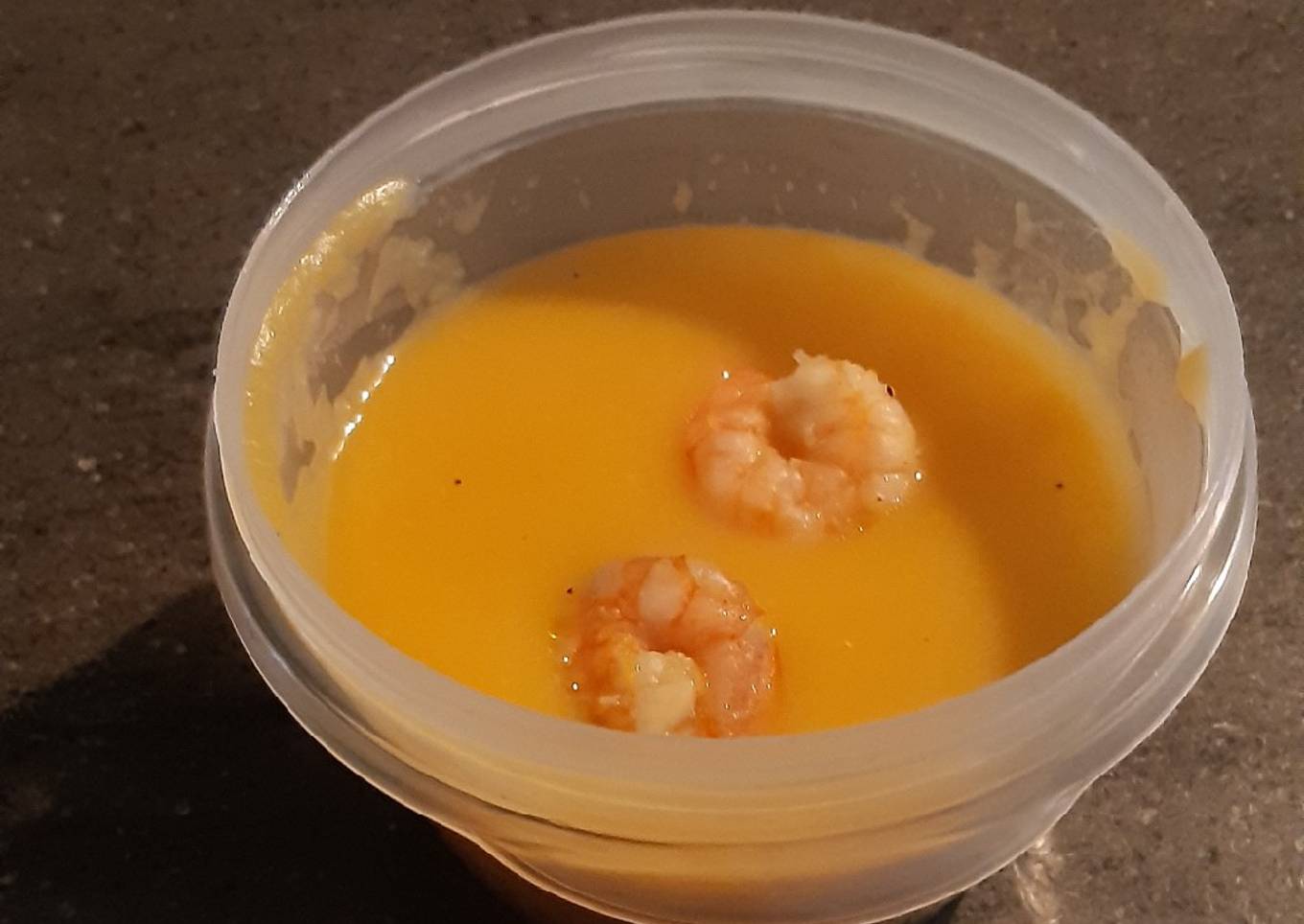 Puré de calabaza y langostinos