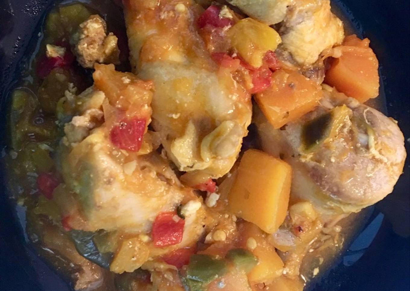 Pollo en salsa con pisto de calabaza (aprovechamiento)
