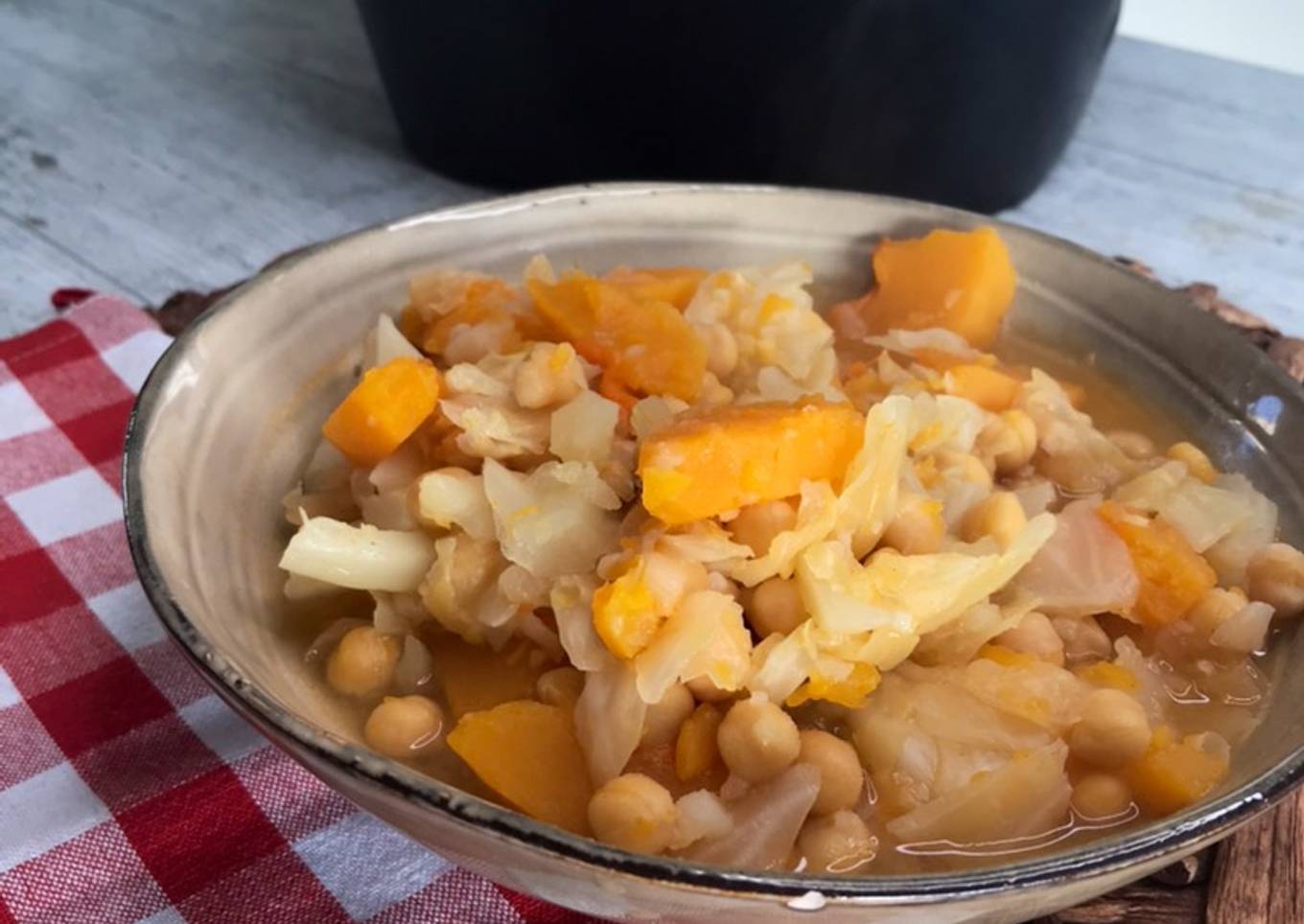 Guiso de invierno de col y calabaza con garbanzos en olla FussionCook FC7Smart