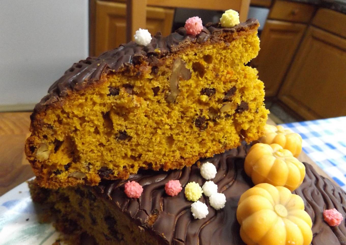 Pastel de calabaza con nueces y chocolate